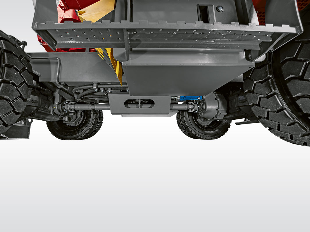 • Perfekter Schutz der Schlauchleitungen im Schwenkbockbereich durch massive Abdeckung